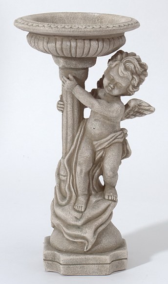 alabastrite cherub birdbath with antiqued stone finish