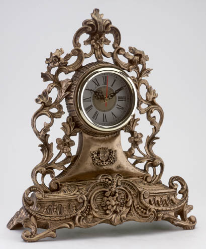 "Italian Antique" mantel clock. Ornate floral design. Alabastrite