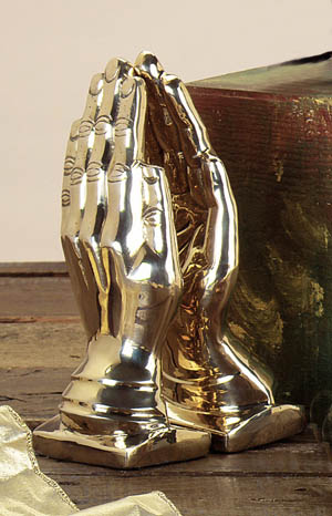 Inspirational brass "Praying Hands" bookend set