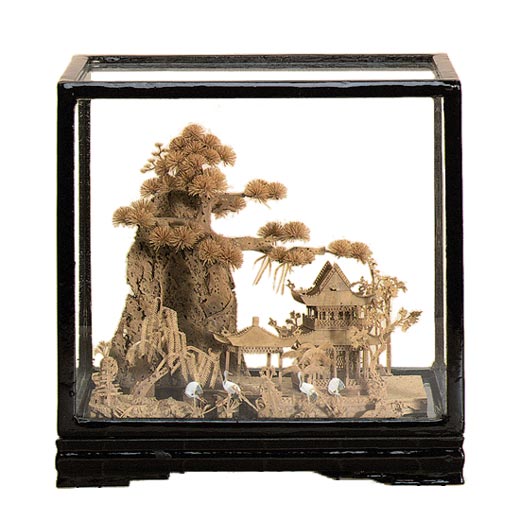A tranquil Far Eastern setting is magically created in intricately sculpted cork,