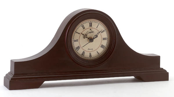 Classic wooden replica of yesteryear's mantel clock. Quartz accuracy with Roman numerals