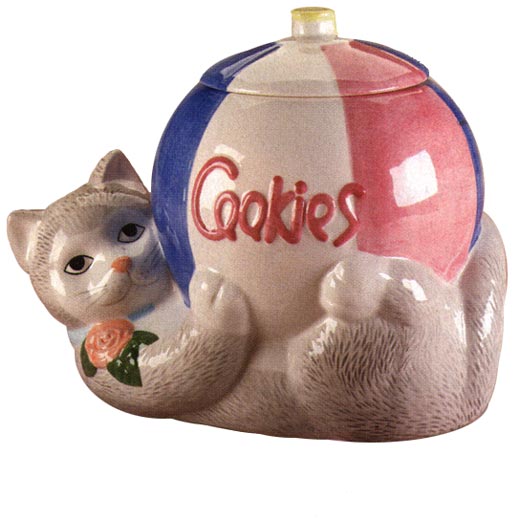 Playful kitten serves up your favorites in a ball-shaped cookie jar.