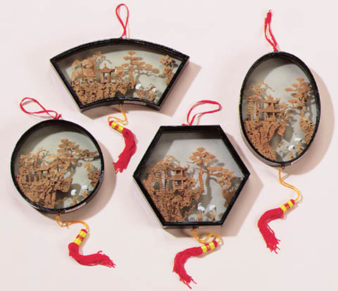 Attractive and unique four-piece set of cork sculpture wall hangings.